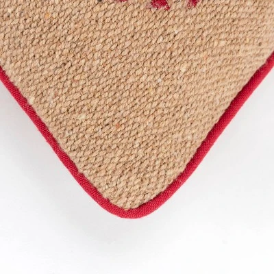 This homespun soft sotton jute pillow is beautifully embroidered with nostalgic holiday ornaments that we all familarize with the holiday season. Contrast welting in red frames this beautifully organically crafted pillow beautifully. The same fabric in a solid back features a hidden zipper closure for ease of fill and cleaning.