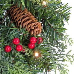 Farmlyn Creek Artificial Christmas Wreath With Holly Berries For Door Decoration (15.7 In)