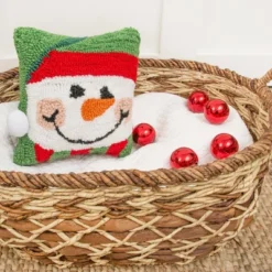 Bring a festive look to your holiday decor with this hooked gift pillow. Featuring a whimsical pair of perched cardinals upon a branch all bundled up for the cold weather with their hats and scarf in a soft blue and red colorway. This 6-inch x 12-inch pillow makes a great gift for the holiday hostess or a close friend. Crafted with acrylic yarn on cotton canvas and lofty polyester filling. Spot cleaning recommended. Size: Each pillow is 6 x 12 inches.