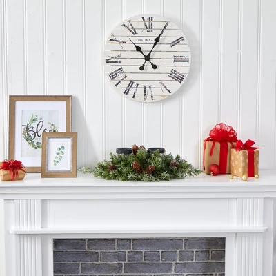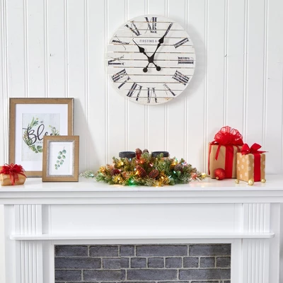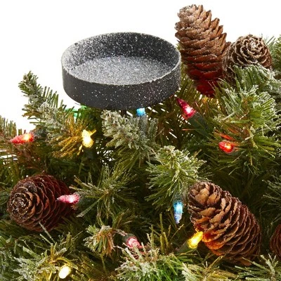 Set your home aglow this holiday season with the help of this artificial candelabrum; specifically designed as an elaborate candle holder, it’s intricately designed from a rich overgrowth of realistic looking pine greenery, handsomely accented with miniature faux pinecones, all carefully surrounding a duo of candle holders. Better yet, this seasonal centerpiece comes already pre-strung with 35 multicolored lights and a light frosting of fake snow, eliminating unsightly messes and holiday stress. Reaching 24” long, this winter-ready decorative accent would make a snowy addition to a mantle or a holiday-inspired tablescape. Silk arrangements are manufactured using synthetic materials, such as polyester material or plastic, and are well designed and constructed to be life-like in appearance. This item will need to be re-shaped when removed from the secure box to allow it to reach its fullest size. Your artificial arrangement will look beautiful for years to come; simply wipe clean with a soft dry cloth when needed.